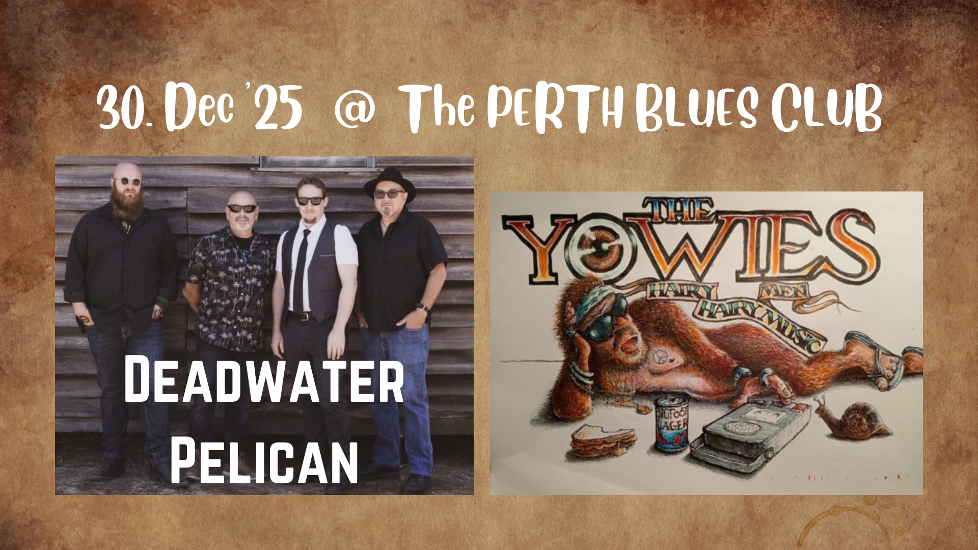 The Yowies, those ethereal creatures of myth and legend, they’re very real and very much right here..and Perth Blues Club is where you’ll spot them in all their Hairy Man glory for the first time. Join Pete Romano, Richie Pavledis, Tony Shergold and Hank Deberitz to launch this very Hairy RnB band, right here at Perth Blues Club.
