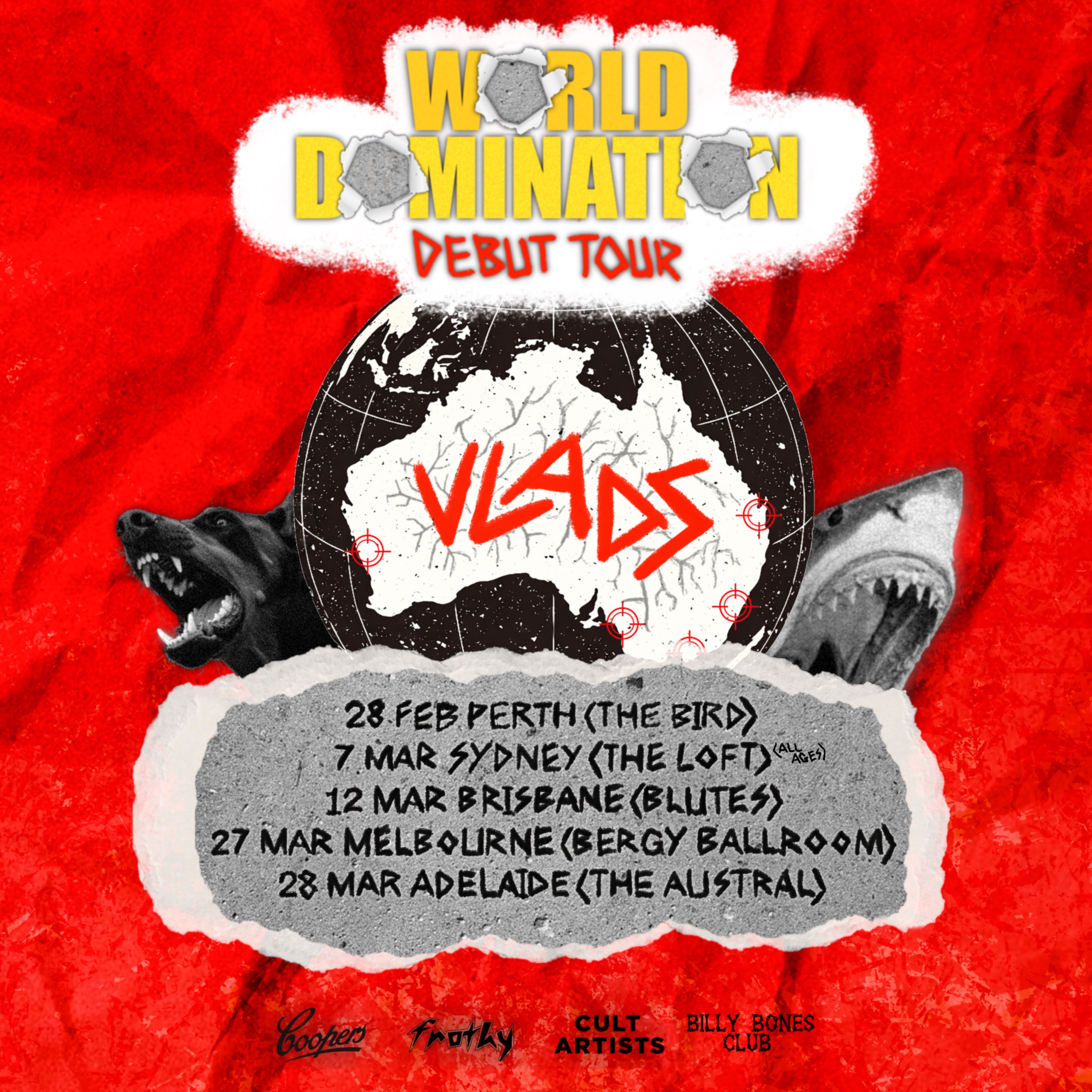 VLADS are cutting loose and taking their ROCKSTAR heart-racing chaos to the world for the first time. Expect sound waves that hit like heatwaves and shows that blur the line between party and prophecy. Sweat, sing, love this is VLADS in full flight.
